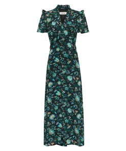 Liliana Cotton Blend Maxi Dress – Black Palm Floral Print