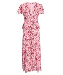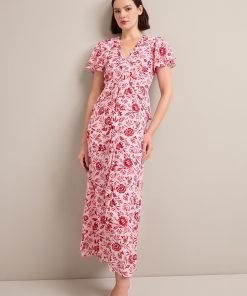 Vivienne Cotton Blend Maxi Dress – Pink Palm Floral Print